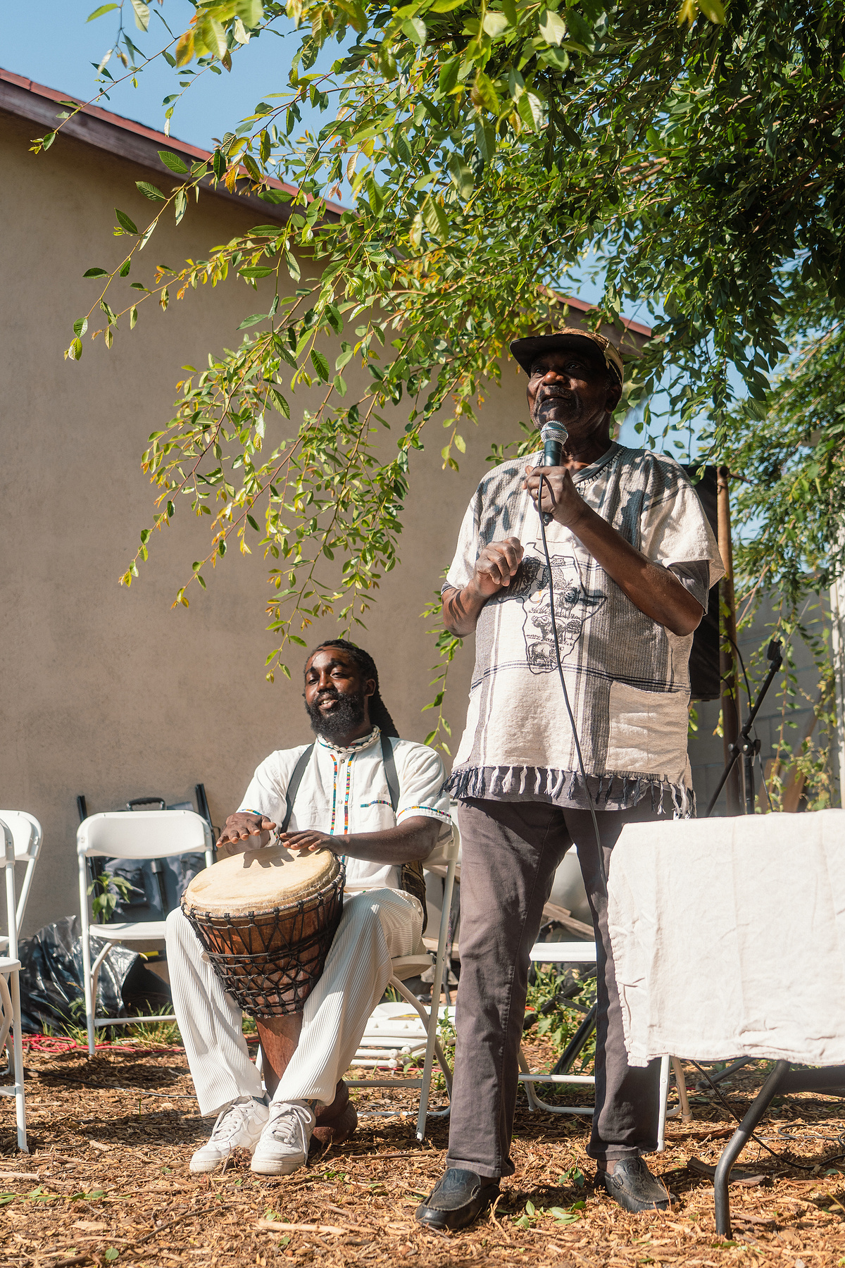 We were welcomed into Akwaaba Food Forest, a living, breathing example of regenerative practice and land stewardship, straddling the line between Altadena and Pasadena communities. The food forest blends groundcover, shrubs, vines, and fruit trees into a thriving ecosystem that feeds not only people, but also insects, animals, and spirit. Located behind the home of Nigerian musician Baba Onochie and his son, Emeka Chukwurah, Akwaaba is a collaboration with his organization, Rhythms of the Village African Cultural Center—a beloved Altadena music shop and cultural space that was lost in the fire.