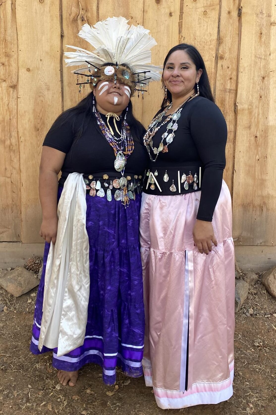 Bernadette Smith of Sacramento has been a traditional dancer for over 30 years and a songholder for over 17 years. The art of traditional Coastal Pomo song and dance has been practiced since time immemorial here in California. Songs and dances, known as the To’to Ko’ O, (feather dancing) have been passed from generation to generation. These songs accompanied by traditional dance create what we call the Feather Dance Ceremonies and gatherings. Songholders keep our songs and share the medicine each song holds for its people and hold a very important and respected position in Pomo culture. Women from the Coastal Pomo Tribes have a very prominent stake in the ceremonies, unlike other surrounding Pomo Tribes where women do not sing nor are even allowed behind the sacred ceremonial pole of their Roundhouse. Coastal Pomo women have solidified their important positions with our Roundhouse and ceremony. Women in Native country have gone missing and murdered at extremely high rates and the importance of sharing these traditional songs and dances correctly is extremely important amidst our personal and shared losses across the community. Bernadette’s father, David Smith was known throughout California for his perpetuation of the To’ to dance. I intend to continue his life’s work by teaching young Pomo women. It is important for each song to be taught firsthand and the pronunciation of the sounds to be sung correctly. Our songs hold great value and can only be shared with students who demonstrate a deep commitment to our traditional ways.