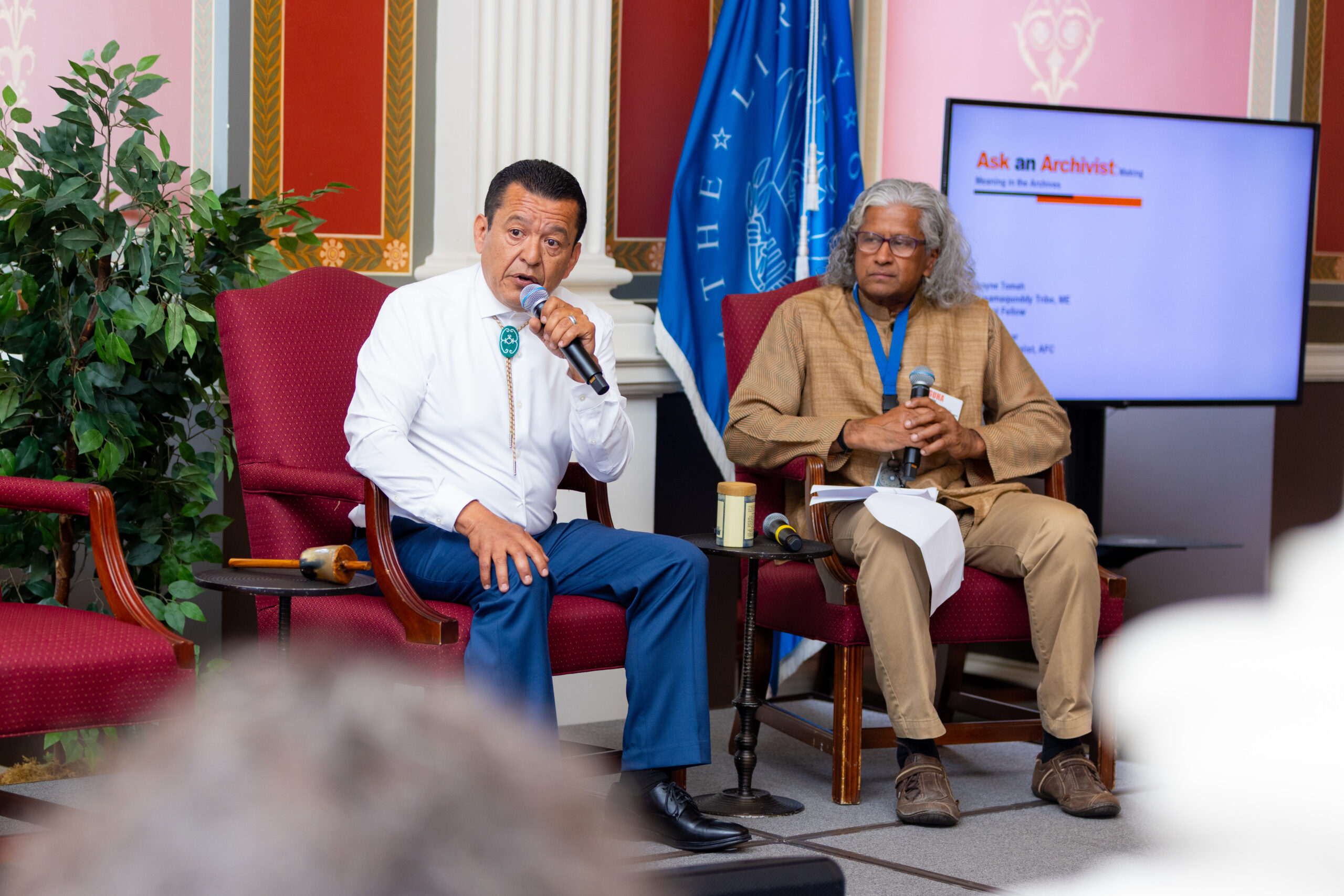 2024 Maine-based Fellow Dr. Dwayne Tomah spoke with the AFC’s Guha Shankar about his work with the American Folklife Center on “rematriating” recordings of the Passamaquoddy language to his community. Photo: Candace Dane Chambers/ACTA.